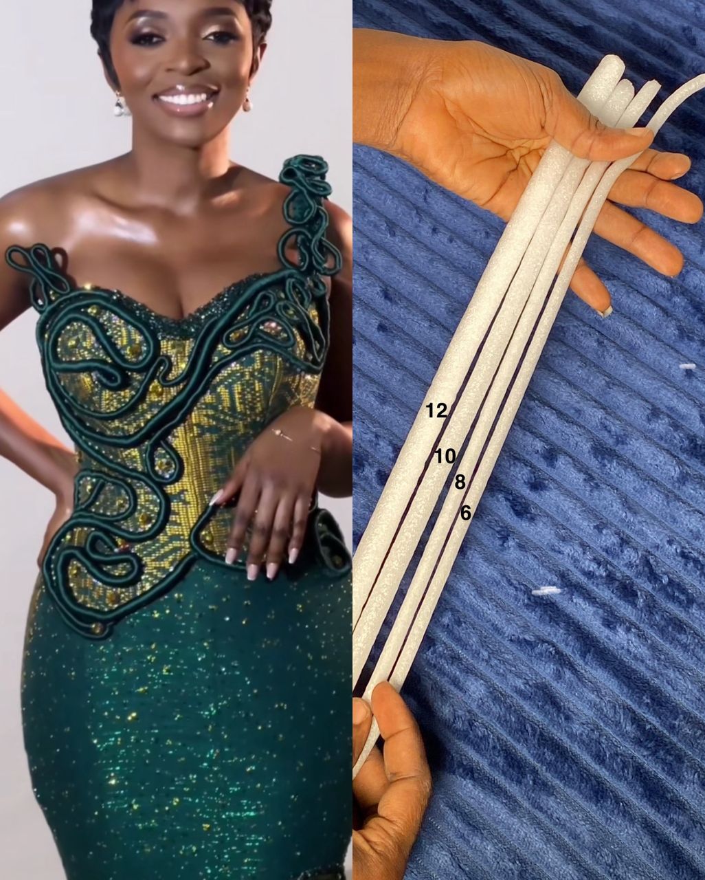 A polytene foam rod that can be used as a base to create any shape or structure form of design for an outfit, you can roll it with embroidery thread or any thing of your choice.